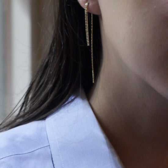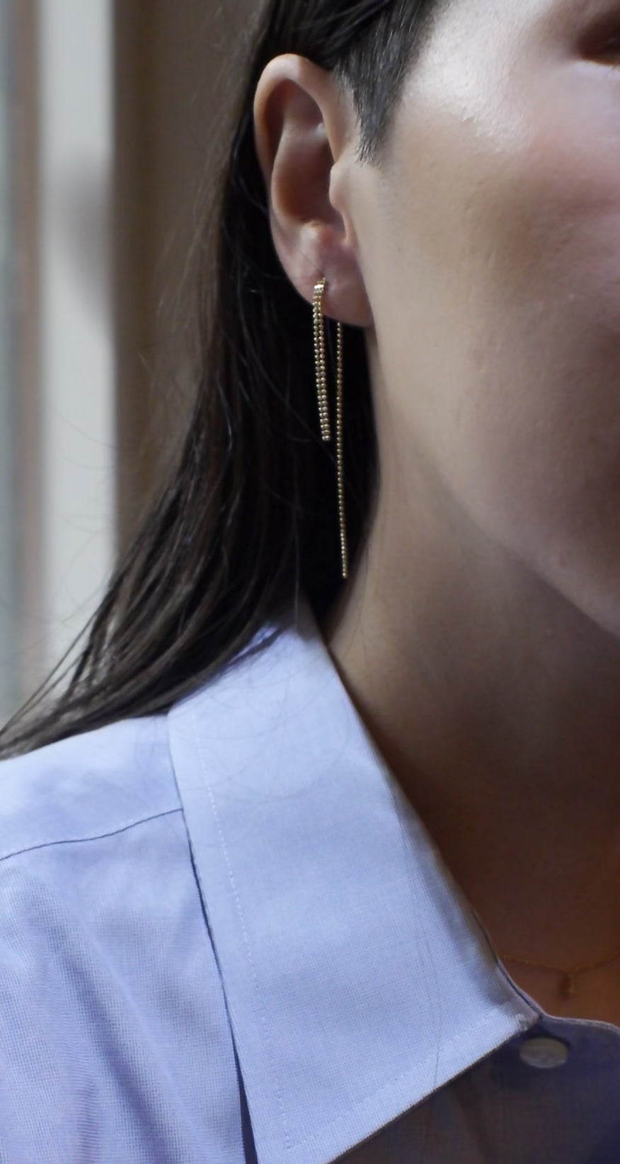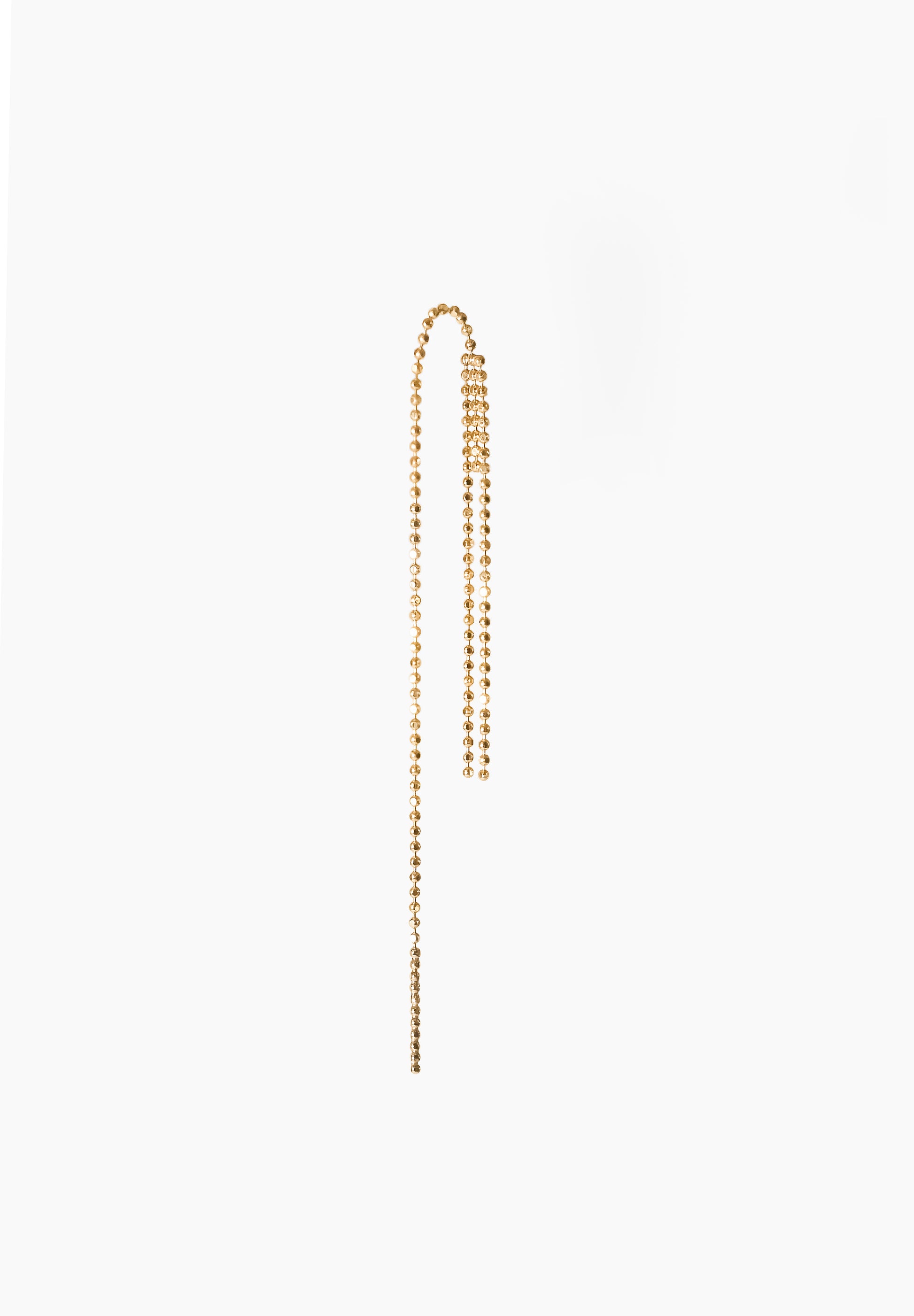 Folkは3本の長さ違いのチェーンが流れるようなシルエットを形作る、華やかかつ上品な印象のピアスです。