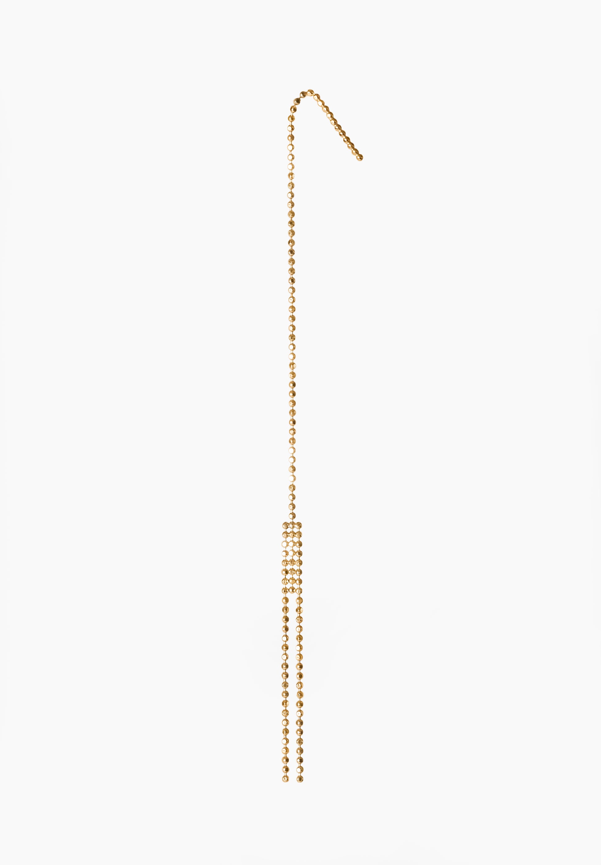 約1.0mmのボールカットチェーンが、房のように重なり、繋がり、美しいシルエットを形成しています。また、ボールチェーンを溶接し固める技術により、無駄を削ぎ落とした完全にミニマルなスタイルを実現させました。