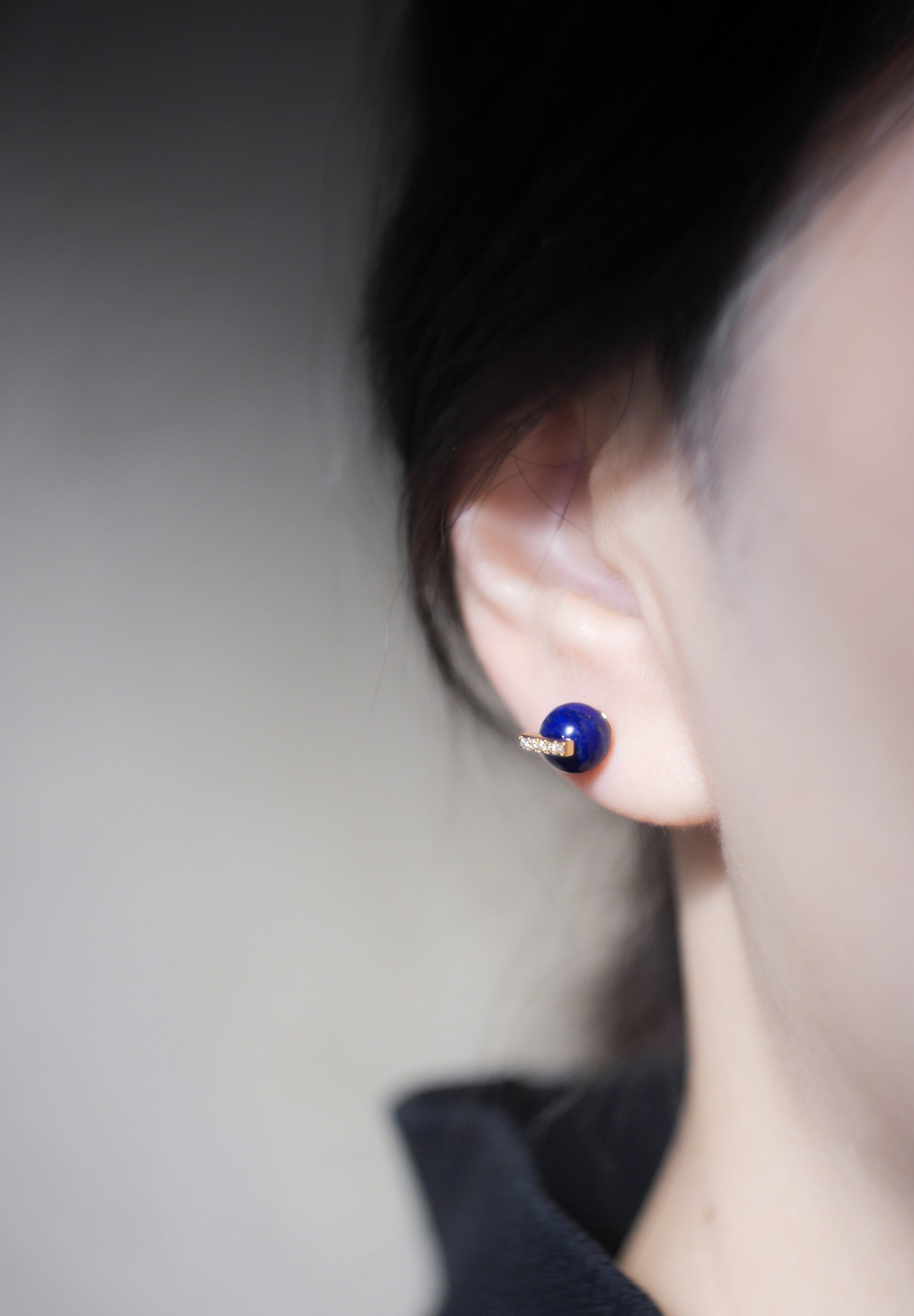 BEHIND THE MASK | Pierced Earrings | 18-karat yellow gold, Lapis Lazuli, Diamond | Lapis Lazuli: diameter 6.0mm