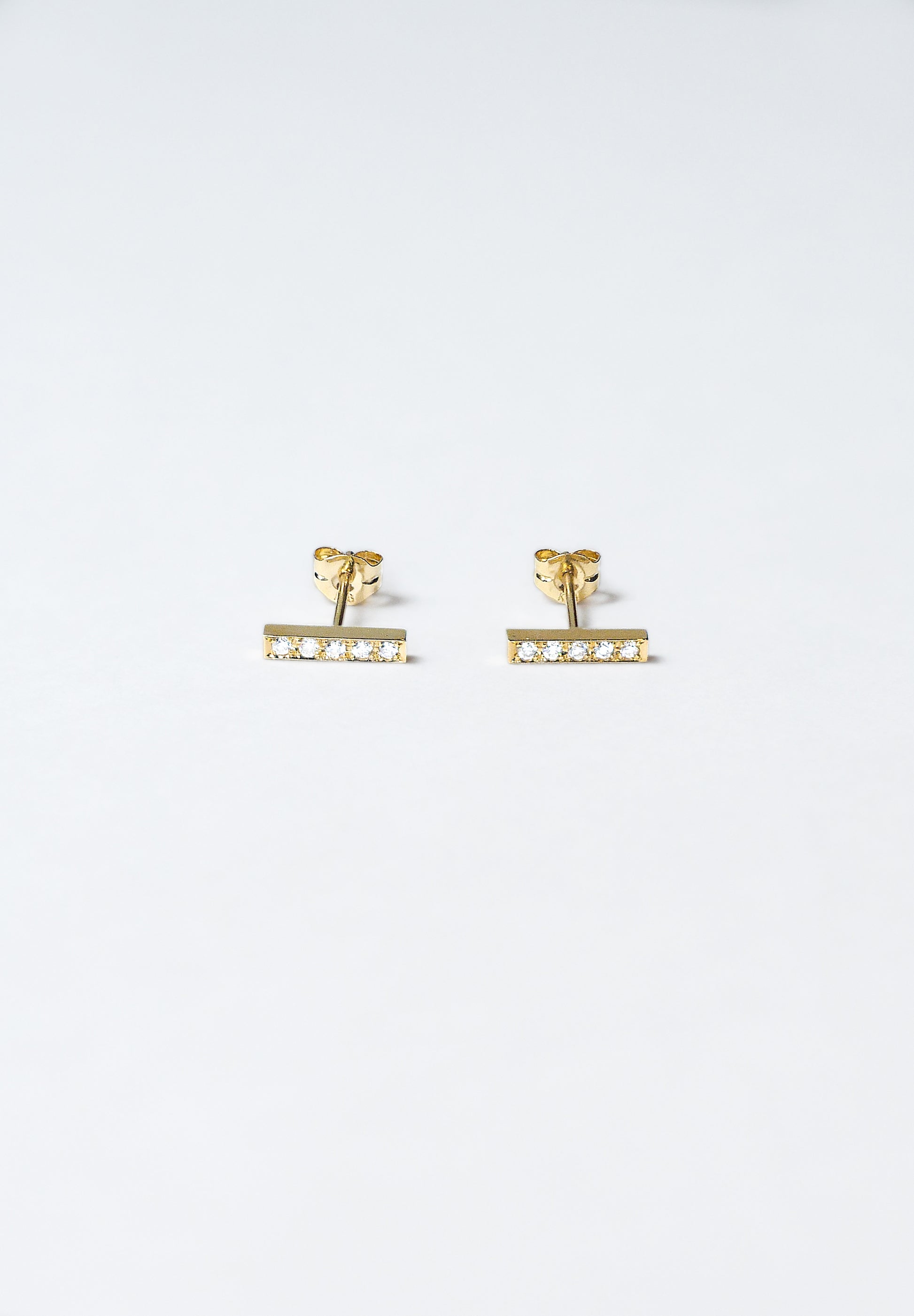 ミニマルなシルエットのダイヤモンドのピアス。静かなデザインながら、直線が感じさせる凛々しさを備えた、どんなシーンにも合わせられるアイテム。