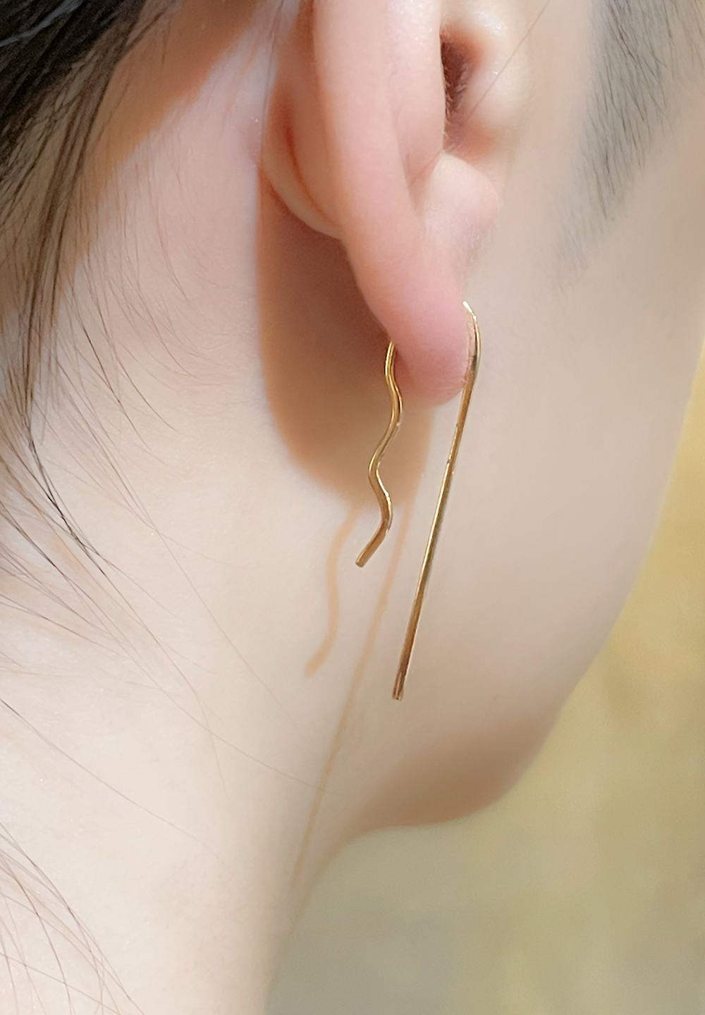 バレエの演目"白鳥の湖"からインスパイアされた軽快な雰囲気のピアス。また、このピアスの形状はヘアピンから着想されており、バレリーナの女性達や、彼女たちが髪にヘアピンを付ける様をも想起させるアイテムです。うねった線は造形的にも美しいラインを形づくっており、耳に装着した時にはさらに注目を集めるポイントとなります。片耳でも、両耳でも、安定した存在感を放ちます。