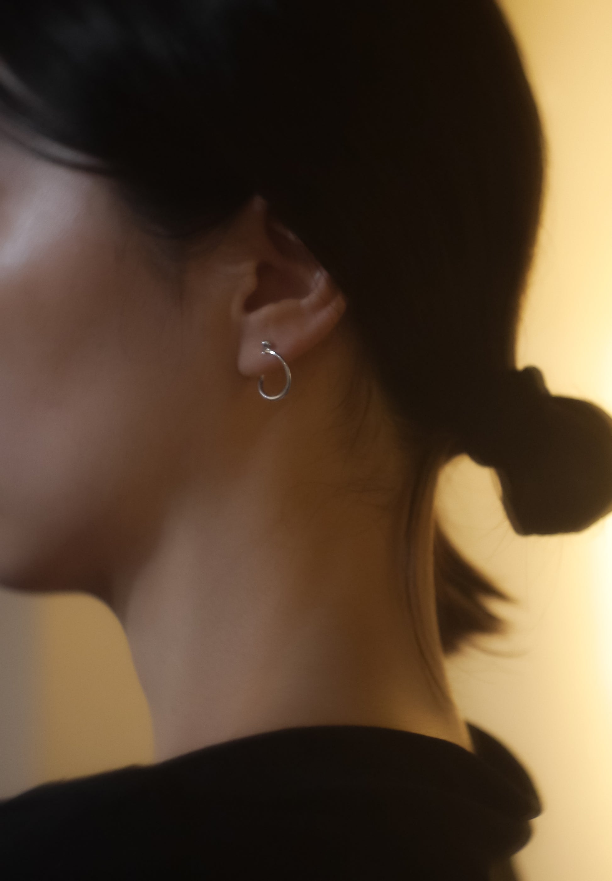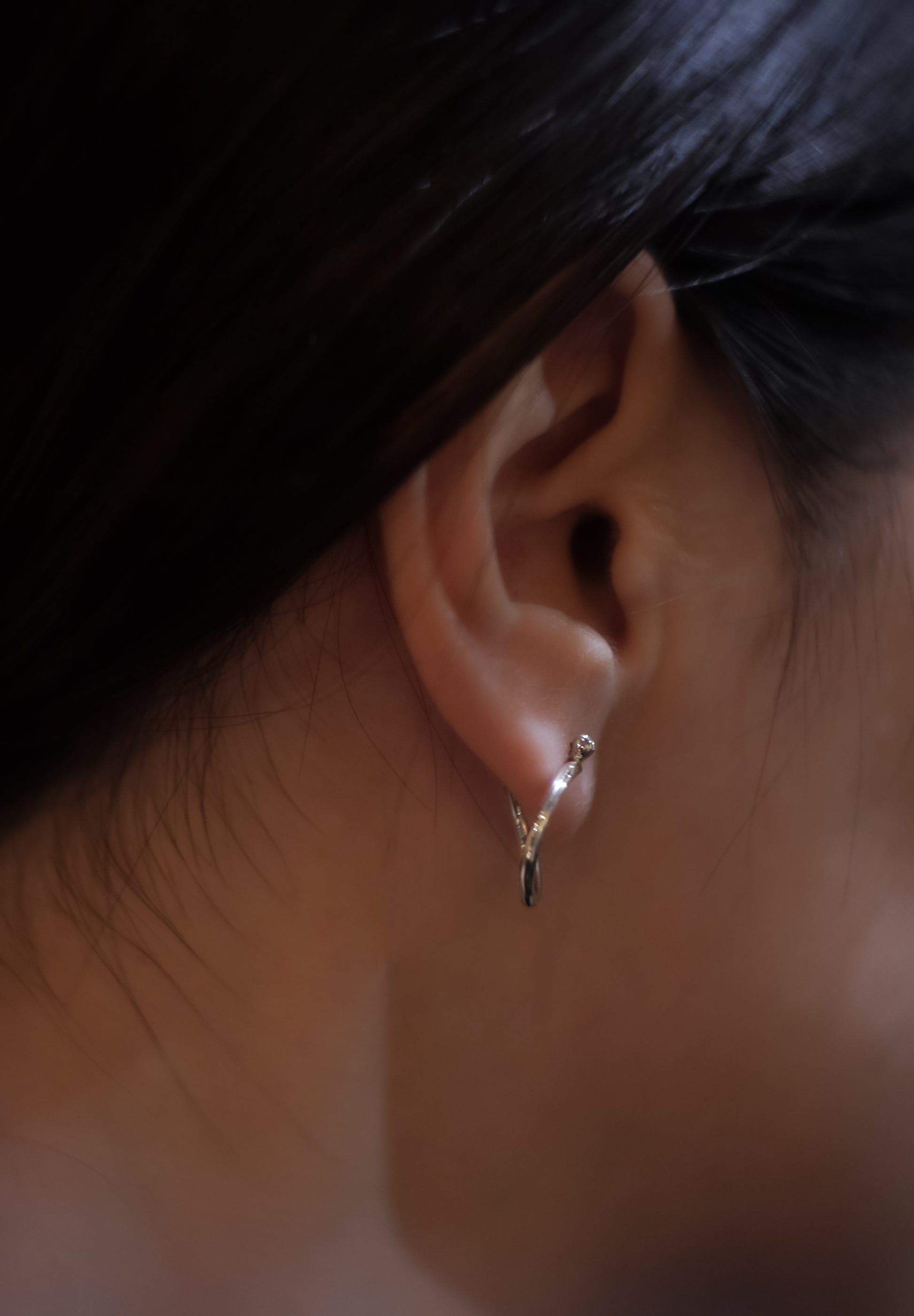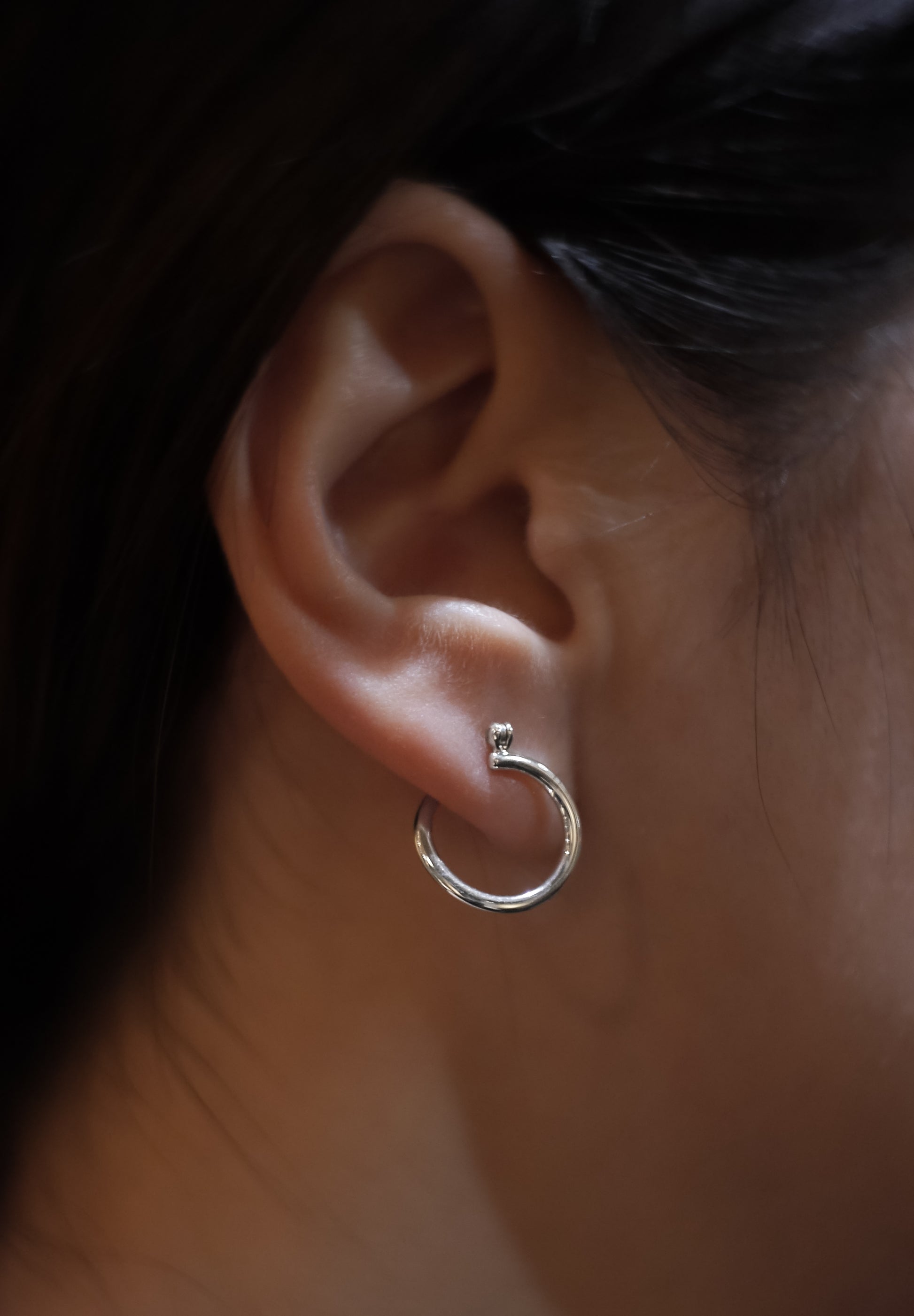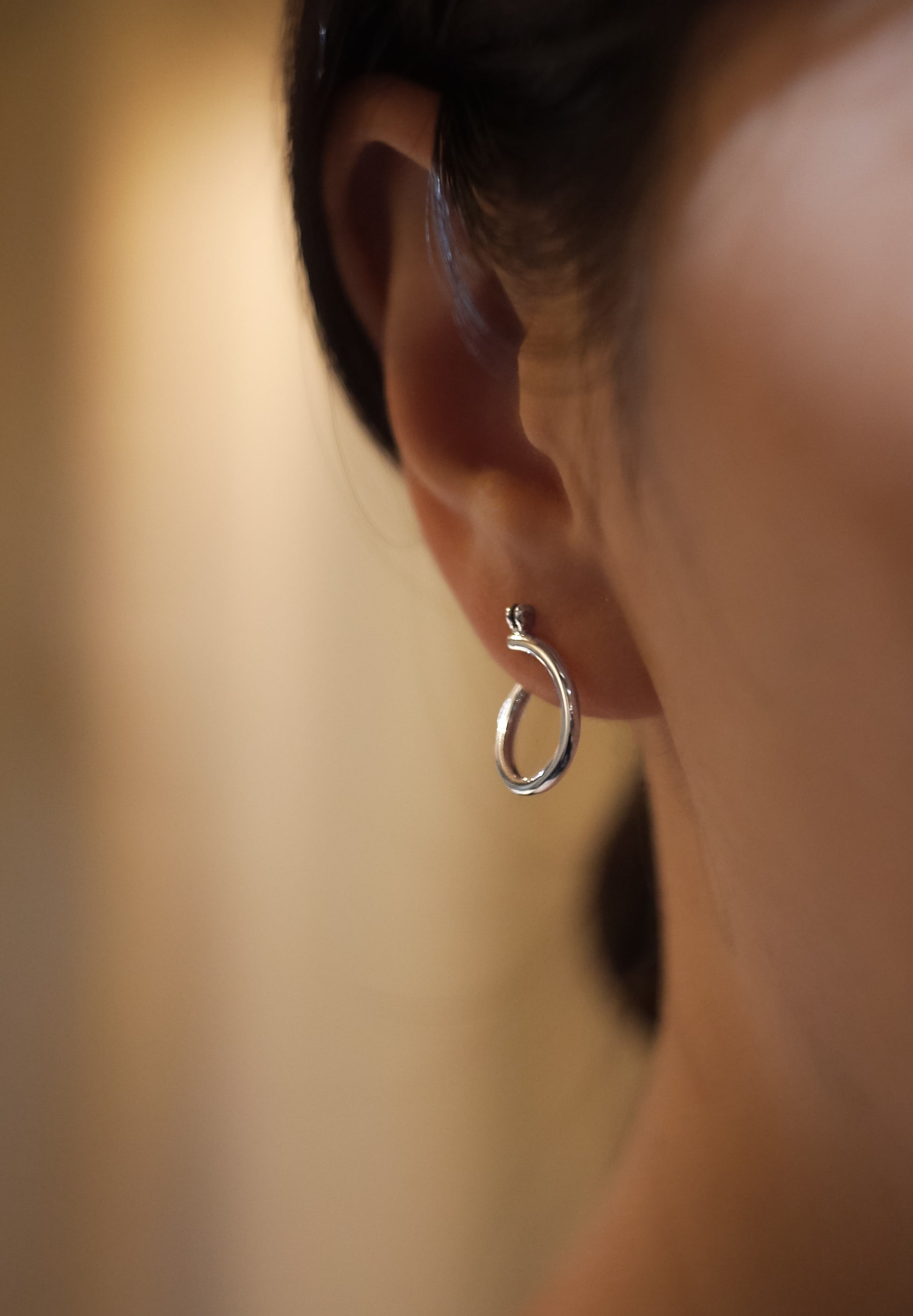 Poissonはフランス語で魚の意。魚が躍動する姿から、また建築家フランク・ゲーリーの魚がモチーフの建造物からインスピレーションを得てデザインされたフープのピアスです。通常のフープピアスと違い、本体のフープを捻ることによって立体的な仕様と構造になっています。