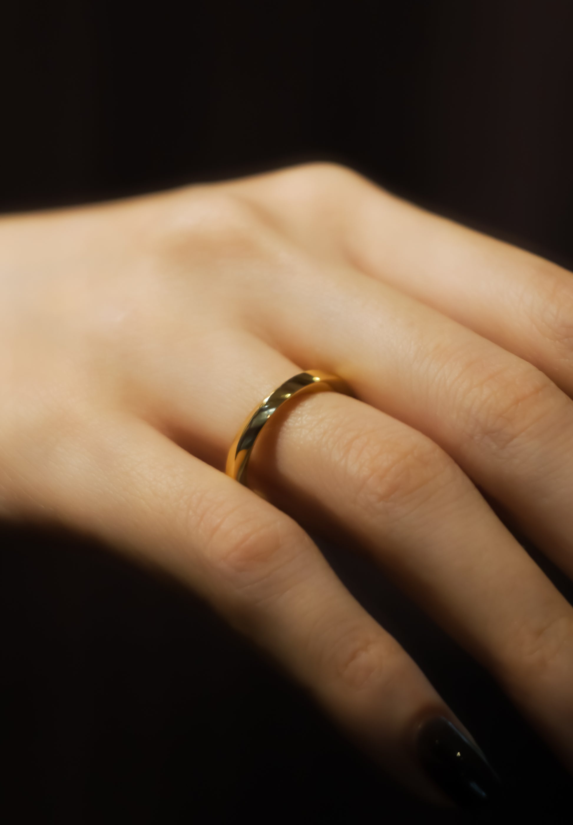 バラをイメージし、花びらを抽象化した詩的なリング。花弁のような流線形が、滑らかで有機的なシルエットを描きます。